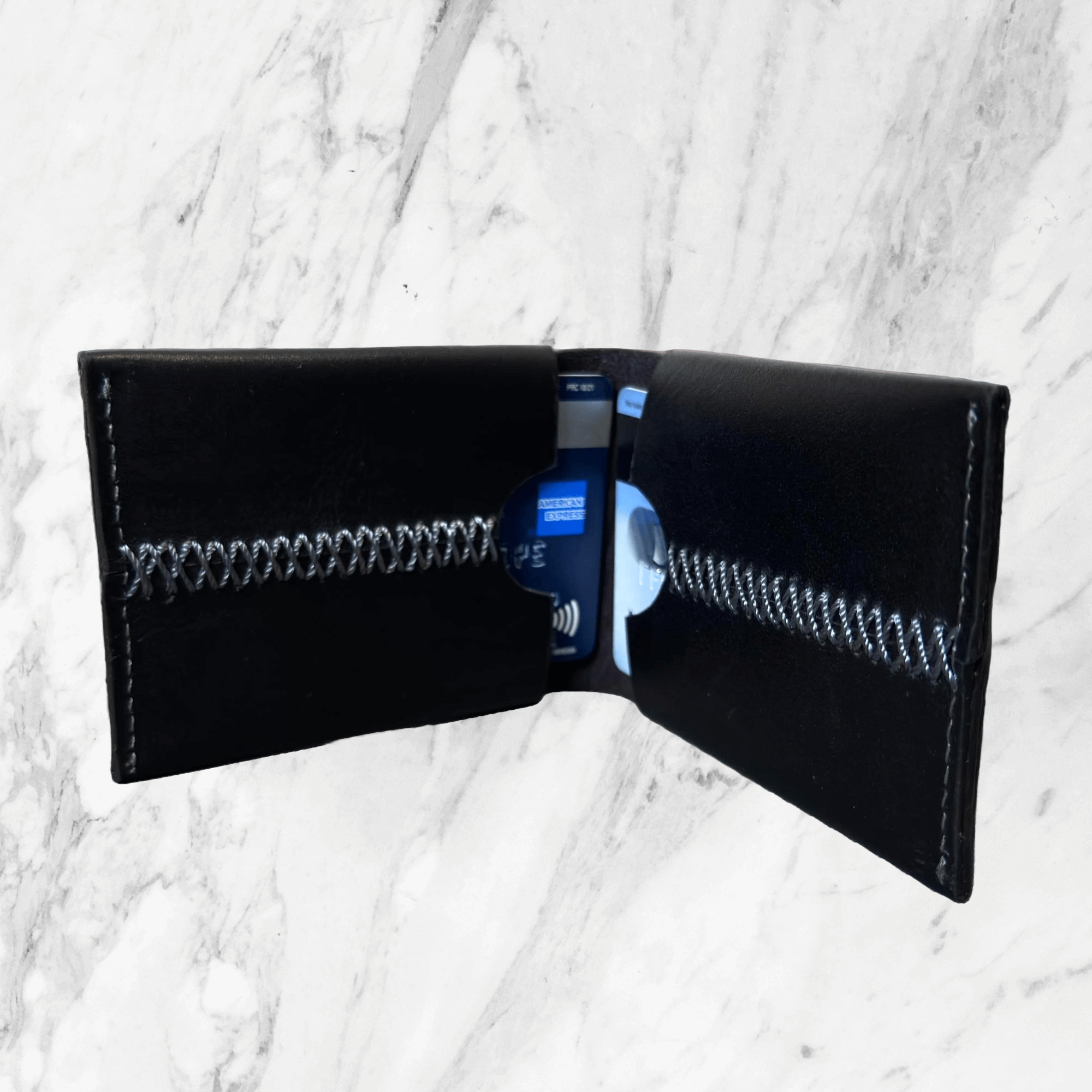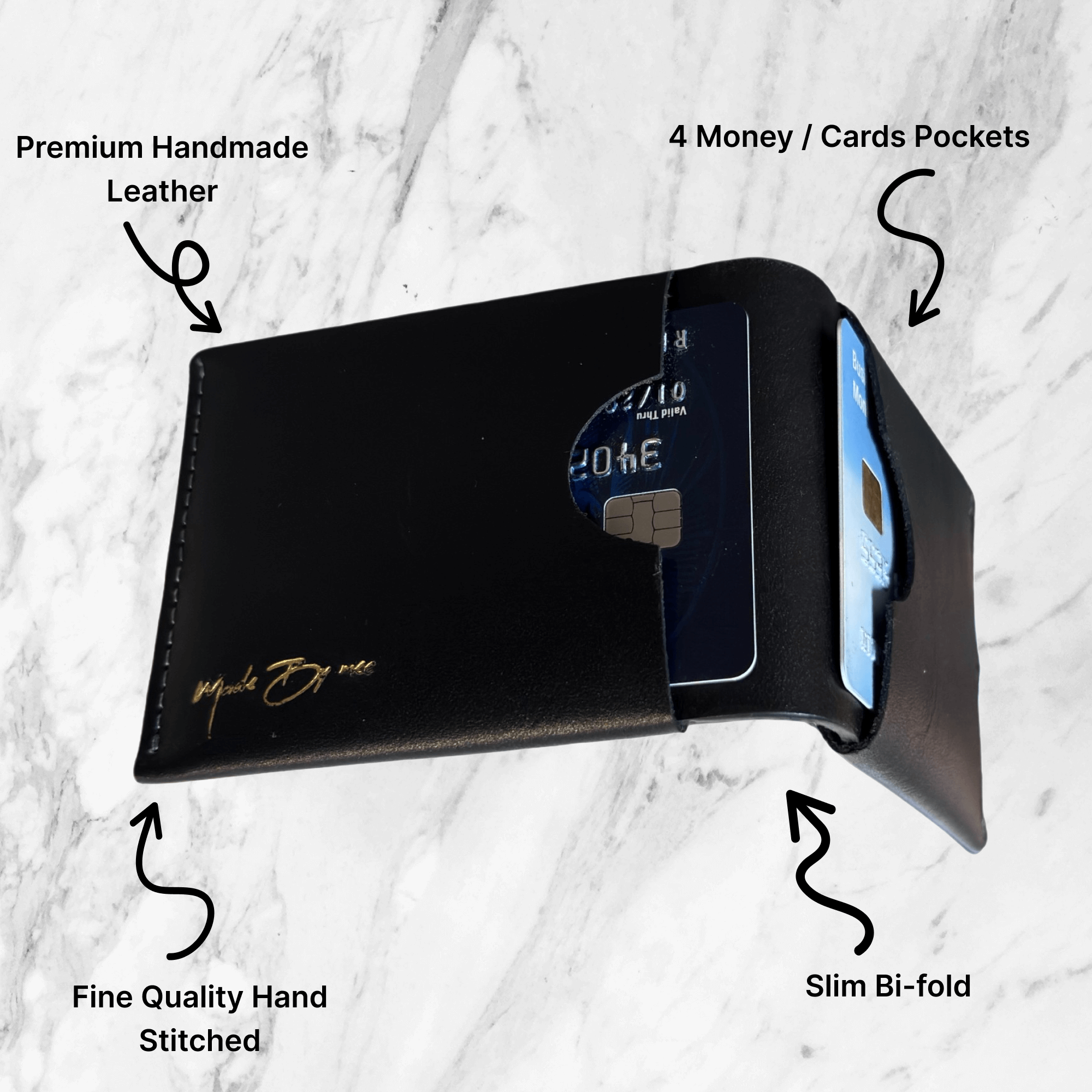 Slim Premium Handmade Grain Leather with Sleek Coin & 4 in-Pockets Pocket with Zipper for Men & Women (Black)